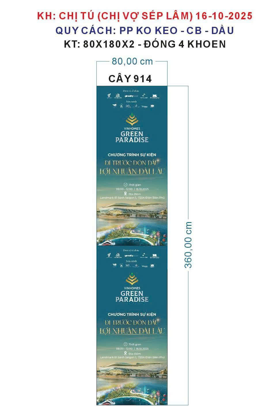 Standee PP Không Keo 360x80cm – In Mực Dầu Cán Bóng, Bền Màu, Sắc Nét
